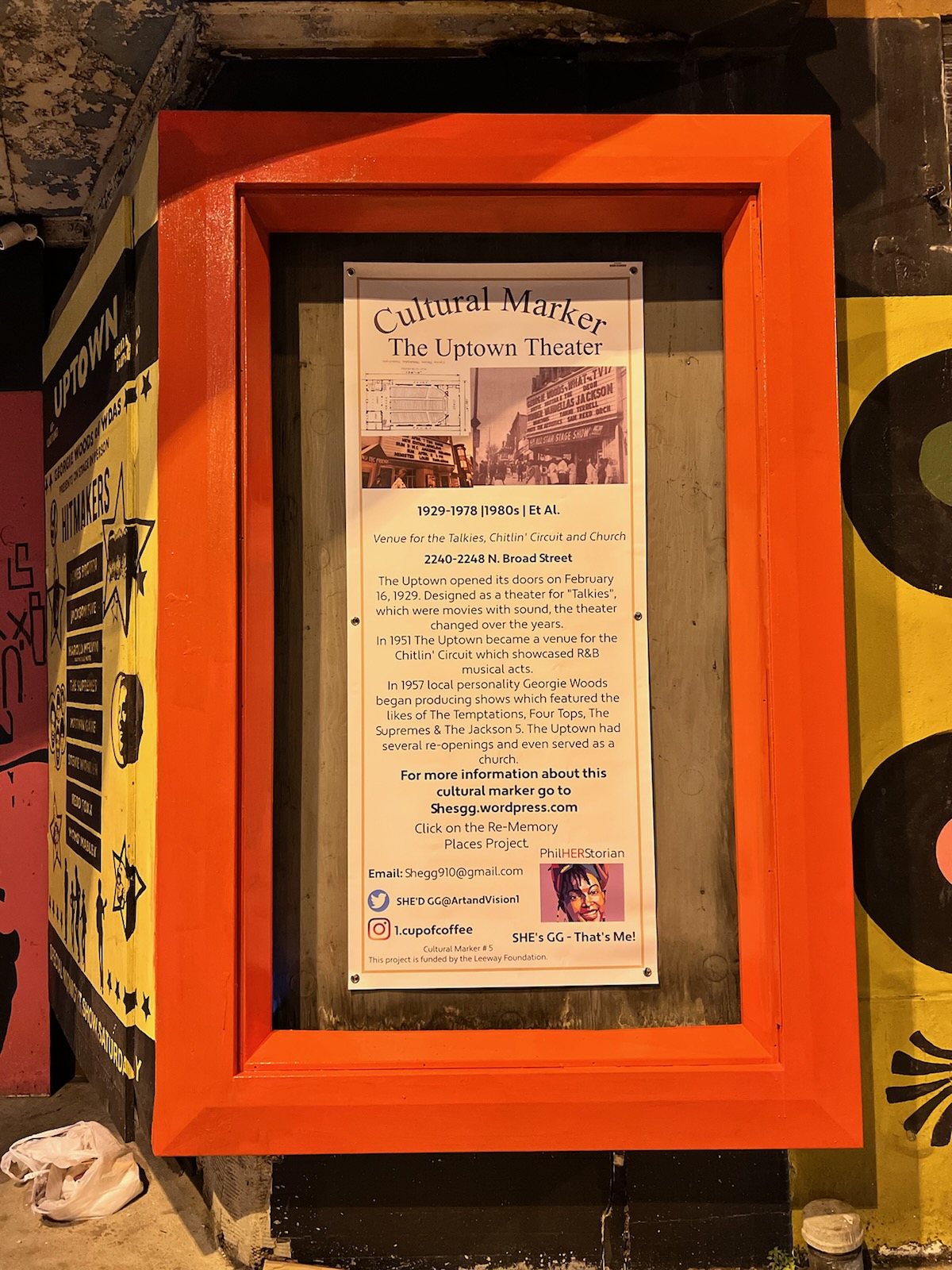 The first six installments of the Re-Memory Places Project were made possible through a Leeway Foundation grant. Re-Memory Places Project is a combination of cultural markers for places, people, and events that once existed and a storytelling board. The Re-Memory Places Project uses visual journalism, and interviews with historians and locals to bring to light histories in danger of being lost to time. There is also a performance component with the addition of the Philly Doo-Wop Corner pop-up serenades-which highlights the cultural phenomenon of the late 1950s to the late 1960s. Additionally, POMON–Philadelphia Online Museum of Neighborhoods will feature each site, and it will be curated by Philadelphia’s first-ever PhilHERstorian-That’s Me, Gigi!